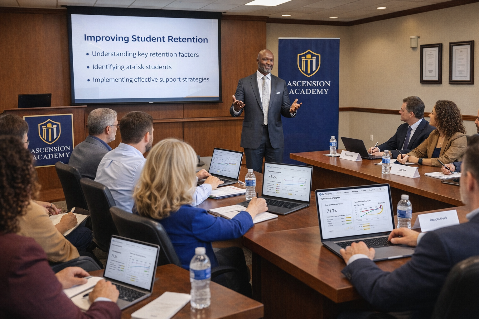 Your retention analytics live in one silo. Staff ignore the analytics because they weren't trained on effective intervention. Accreditation evidence in spreadsheets and shared drives. Training records in another. When leadership changes, you rebuild from scratch. When accreditation visits approach, you scramble.